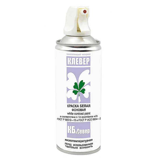 Белый морозостойкий фоновый грунт для магнитопорошковой дефектоскопии "КЛЕВЕР-КБф Север" - предназначен для создания белого фона на изделиях с темной поверхностью перед нанесением на них магнитной суспензии при проведении неразрушающего контроля методом магнитных частиц по ГОСТ Р 56512-2015 в условиях холодного времени года.