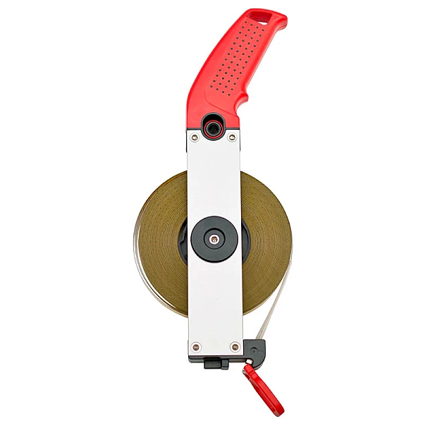 Лента измерительной рулетки BMI ERGOLINE 30 M производится из высокоуглеродистой стали высокой прочности и имеет длину 30 метров. Поверх полотна наносится тонкий слой полиамида, исключающий истирание ленты. Сверху по антикоррозионному покрытию наносится измерительная шкала черного цвета с точность 1 мм.