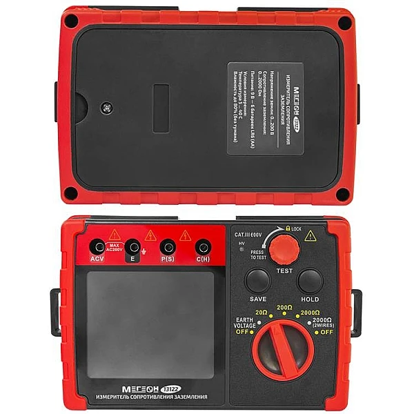Цифровой прибор МЕГЕОН 13122 используется для определения сопротивления заземления по 2-проводной или 3-проводной схеме. Для дополнительной безопасности изделие оснащено измерителем напряжения земли (шаговое напряжение). Применяется специалистами для диагностики, технического обслуживания и ремонта различных заземляющих систем, электроустановок, распределительных устройств и УЗИП, а также другого электрического оборудования. Диапазоны измерений выбираются вручную. Предусмотрено удержание текущих показаний на дисплее. Модель имеет встроенное хранилище на 20 результатов.