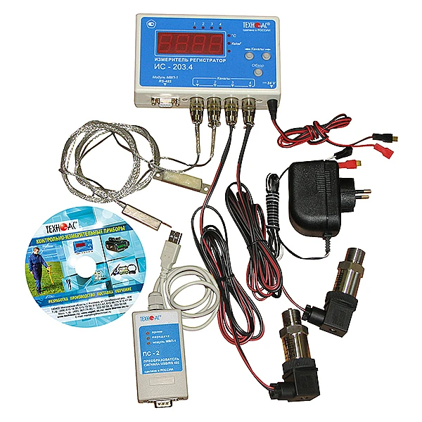 Комплекс для мониторинга температур и других физических величин, построен на основе измерителей регистраторов ИС-203.3, ИС-203.4 (двух или четырех канальные), подключенных к проводной сети RS-485 и программы RealTimeControl.