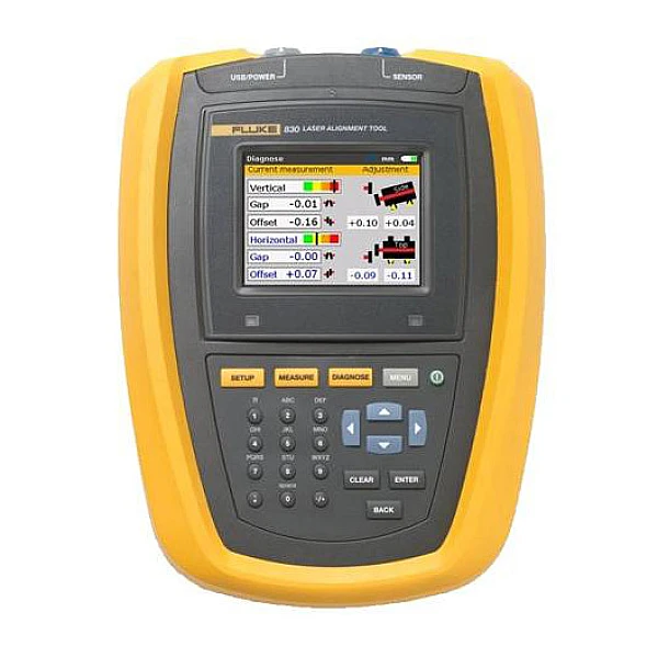 Режим виртуального увеличения даёт возможность использовать прибор центрирования даже со значительной степенью нарушения соосности. Обработка преобразованного запатентованным детектором цифрового сигнала от полупроводникового лазера Ga-Al-As во Fluke 830 проводится при помощи процессора Intel с оперативной памятью 64 Мб. При этом виброметр автоматически сохраняет результаты, позволяя прервать работу и позднее продолжить его с того места, на котором закончили.