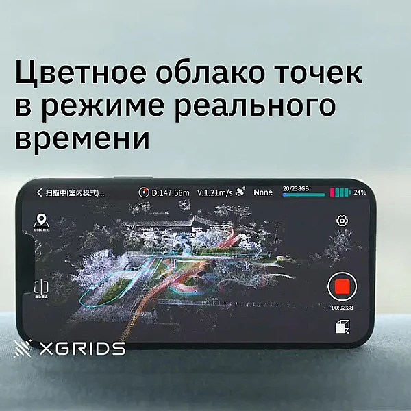 Ключевой особенностью модели является способность создавать цветные облака точек в режиме реального времени благодаря интеграции панорамной камеры с разрешением 48 МП и технологии LiDAR. Это позволяет получать высококачественные 3D-модели объектов с точностью до сантиметра, отражая все детали и цвета.