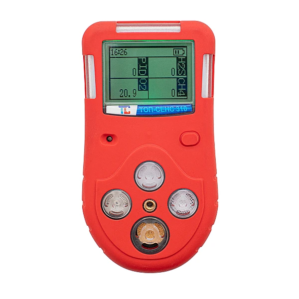 Это компактный переносной многоканальный детектор с большим легкочитаемым дисплеем. Он контролирует CH4, CO, H2S, O2 и горючие газы одновременно.