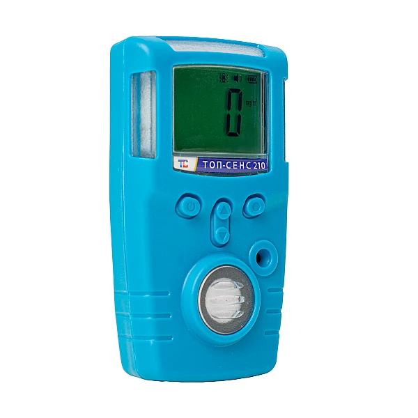 ТОП-СЕНС 210 (NH3) используется для измерения концентрации аммиака в воздушной среде рабочих зон и помещений в диапазоне от 0 до 200 частей на миллион.