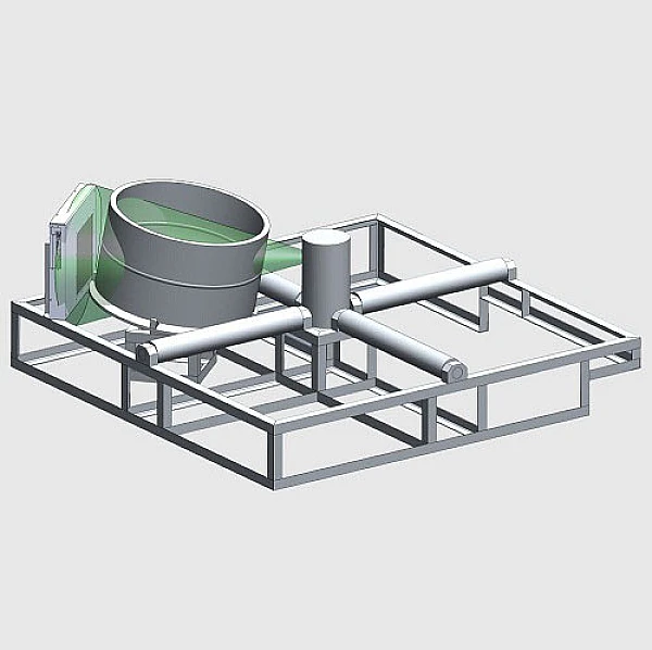 Манипулятор выполнен в виде двух поворотных столов: малого и большого. Большой поворотный стол имеет две пары перпендикулярно расположенных приводных роликов. Вращение роликам передается через мотор-редуктор. Малый рабочий стол оснащен кулачковым зажимом и смонтирован таким образом, что его рабочая плоскость наклонена под углом 10° к плоскости большого стола. В зависимости от размера катушки оператору предлагается использовать большой или малый загрузочный стол. В центре камеры расположена рентгеновская трубка под металлическим колпаком, который предотвращает ее от возможных механических повреждений. Обеспечено вращение объектов контроля на угол 360°. Рентгеновская трубка и детектор рентгеновского излучения установлены в камере жестко без возможности осуществлять манипуляцию.