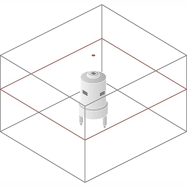 Проекция двух лазерных лучей осуществляется с погрешностью не более ±0,1 мм на метр рабочего расстояния — это один из лучших показателей в этой ценовой категории. Угол самовыравнивания нивелира составляет ±5°, что позволяет компенсировать неточную установку и тратить на подготовку прибора к работе значительно меньше времени. Если BOSCH GRL 250 HV находится на неровной плоскости, и угол превышает допустимое значение, ротор останавливается, а лазерный луч начинает мигать, что избавит вас от ошибочной разметки, если прибор нечаянно сдвинули или толкнули.