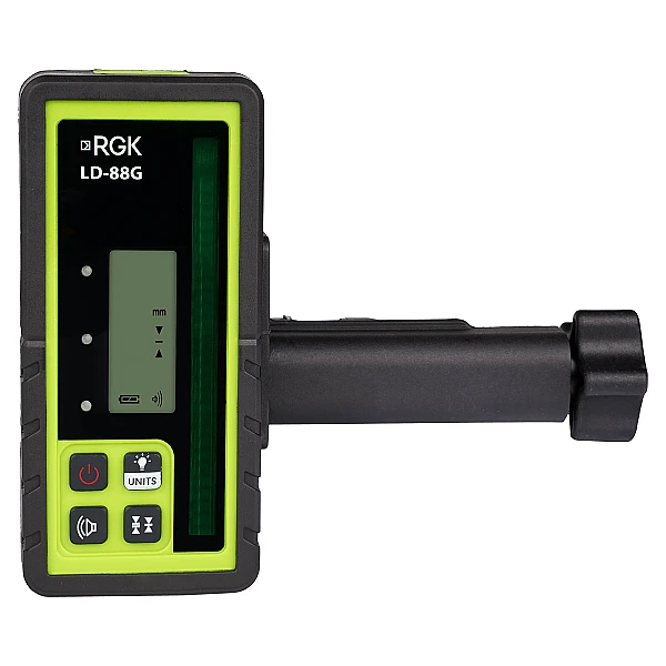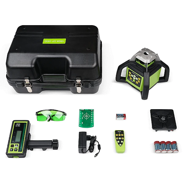 Ротационный нивелир RGK SP-610G позволяет проводить измерения и нивелировку с приемником на расстоянии до 300 метров, диаметр рабочей зоны таким образом составляет 600 метров. Погрешность проекции минимальна - всего 1 мм на 10 метров. Оборудование можно установить двумя способами для создания горизонтальной или вертикальной линии.