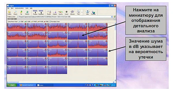 - Одновременное обнаружение шума и определение местоположения утечки повышает эффективность