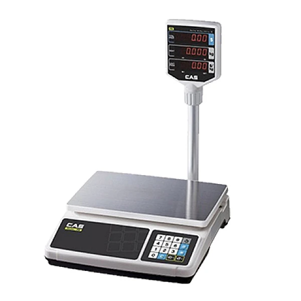 Весы торговые CAS PR-P - качественные настольные весы с набором базовых торговых функций, индикатором покупателя на стойке и автономным питанием. Весы CAS PR-P выполняют простое взвешивание продуктов, фасовку и расчет стоимости покупок при заданной цене за килограмм.
