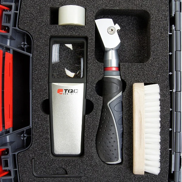 | VF1844 | Полный комплект для оценки адгезии покрытий методом поперечных насечек по стандарту DIN/ISO: резак 6 зубцов по 3 мм, износостойкая рукоятка, щетка, лупа, липкая лента по ISO 2409, кейс из АБС пл/массы |