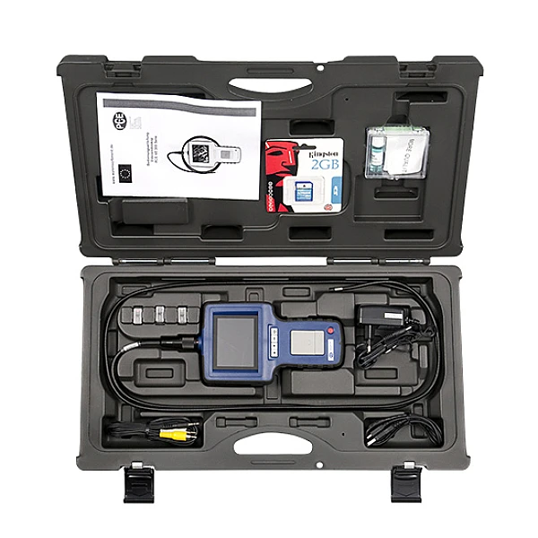 1 x видеоэндоскоп PCE-VE 330 в комплекте с зондом 2 м, зеркала бокового обзора - 3 шт. 1x карта памяти типа SD, 1 х блок питания, 1х видеокабель, 1 x кабель USB, 1 x чемодан, руководство пользователя