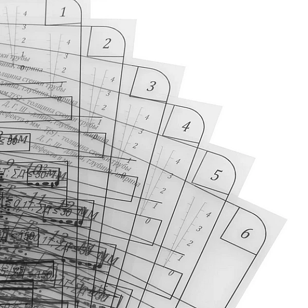 Шаблоны радиографа УШР предназначены для оперативной расшифровки радиографических снимков сварных швов в трубопроводном транспорте, а также для обучения персонала.