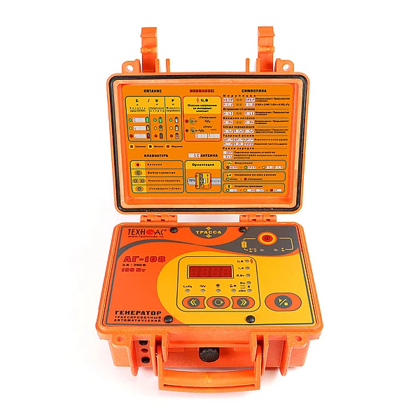 Комплект оснащен новейшим компактным автономным генератором АГ-108 со встроенными элементами питания, дисплеем и встроенной индукционной антенной, для трассировки коммуникации бесконтактным способом.